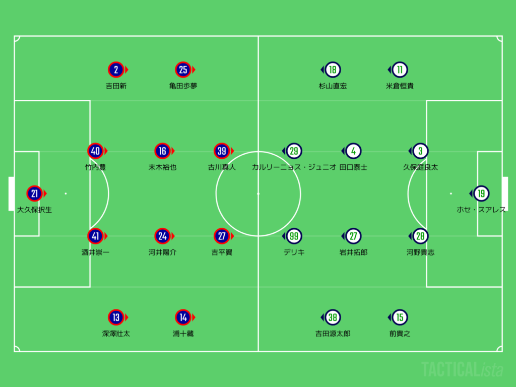 カターレの方は、やはり選手数が多いということもあるし、昨シーズンはルヴァンカップでのターンオーバーを活用して、今後につなげていった経緯を考慮すると、今シーズンあまり出場機会が多くないメンバーが中心になってくるのは考えられるちゃ。とはゆっても、末木裕也、河井陽介、吉平翼など、元々主力メンバーである選手は一定数出てくるのは間違いないやろう。