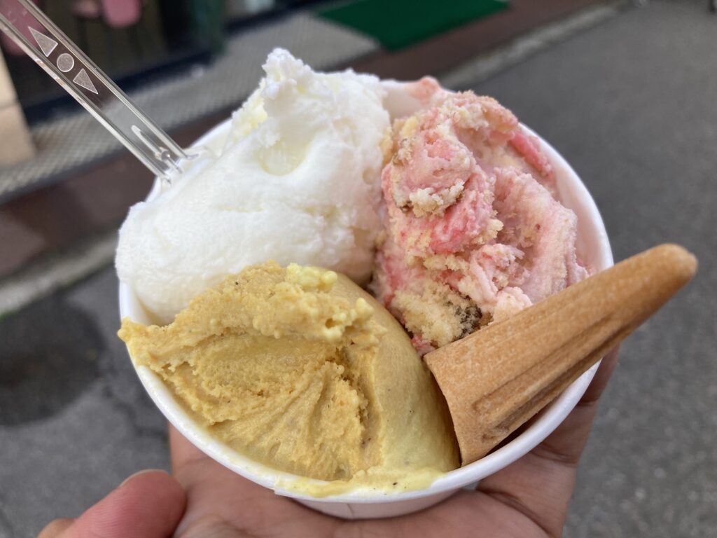いやあ、相変わらずたまらんちゃね…。甘さはくどくなくてよぉ、素材の味がきっちり主張しとる感じが良いちゃ。桜餅は中に餅が入ってて食べててアクセントになるし、よく考えられとるジェラートやちゃ。
