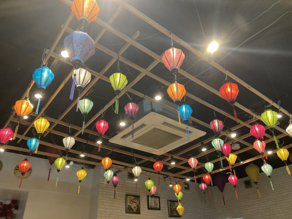 この場所は、以前は「COCO」というベトナム料理店があったがやけど、オーナーが変わったらしくて「タンロンレストラン」という名前になったがいちゃ。前の店は居抜きで席の形とかそのまんまやったがやけど、タンロンレストランになってからは入口も別のところになって、内装もガラリと変わったじゃ。天井にはベトナムランタンが飾られとるちゃ。いい雰囲気になったじゃ。