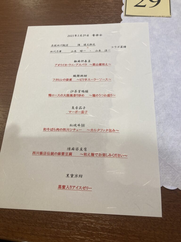 今回ゲストで来ている陳建太郎さんの四川飯店とは提携関係にあるみたいやちゃ。