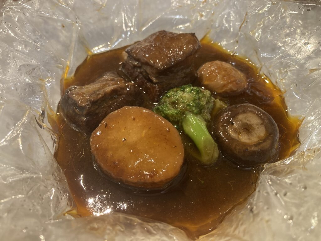これはそのまんまシチューやちゃ。ただ、味付けは完全に四川料理のそれながで、ピリ辛のシチューやちゃ。食材の旨味をしっかり残しつつ、繊細に料理しているのが分かるしよぉ、ラップを剥がした瞬間の肉や野菜の香りがたまらんかったじゃ。これこそ「ヌーベルシノワ」やちゃ。