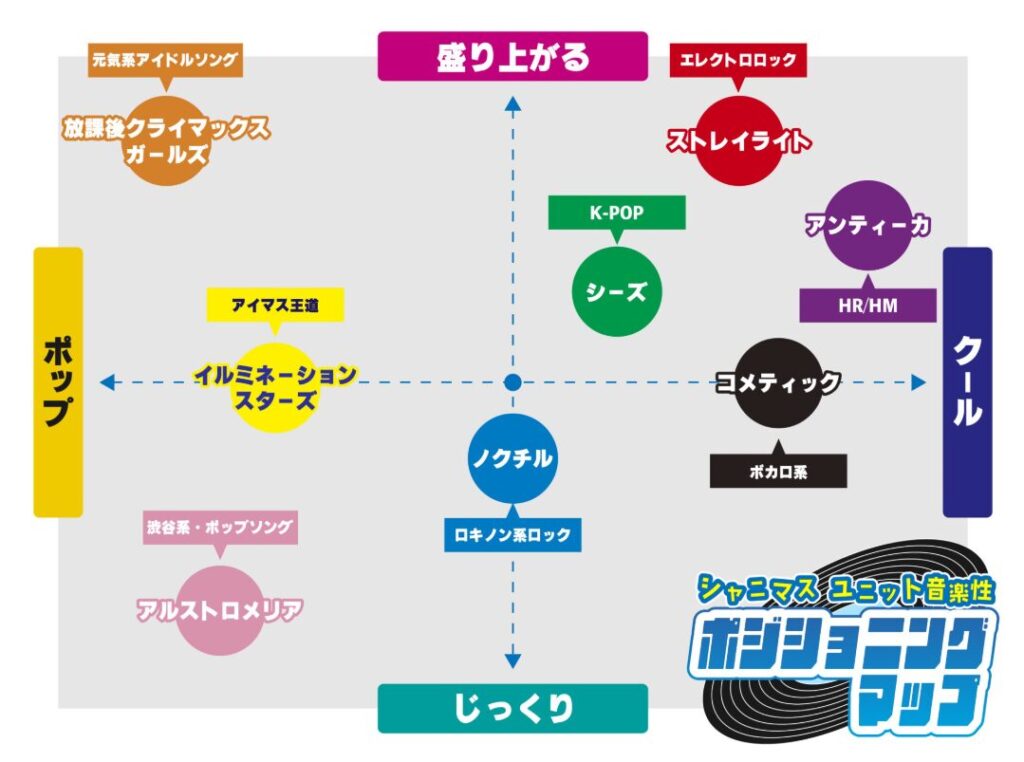 シャニマスの顔的なユニットである「イルミネーションスターズ」は、これまでのアイドルマスターシリーズの王道をしっかり踏襲した感じやけど、他に関しては音楽性の傾向がかなり挑戦的になっとるがで、古くからの洋楽を聴きまくっていたガチオタであるオラにとっては「ここまで徹底するのすごい」と思って聴いていたがやね。