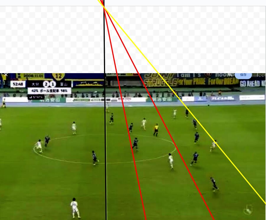 ということで、本当に古川真人がオンサイドなのか、黄線を引いてみるちゃ。