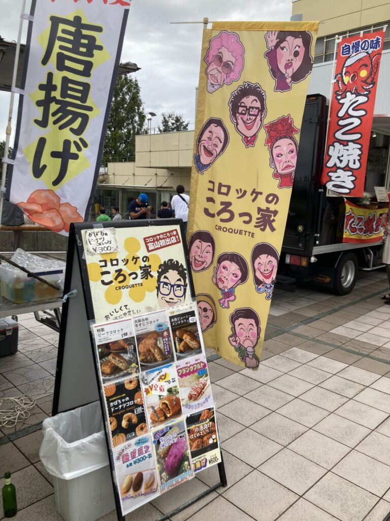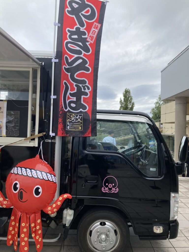 キッチンカーは3台で、フロアの中には4件ほど入っていたじゃ。カターレやグラウジーズほどの店数ではないがやけど、今年も7〜10くらいの店が来とるがやね。で、左のたこ焼き屋はよぉ、オラの親友が営んでいる店ながやけど、開幕戦ではいつもの倍くらいはキッチンカーが来ていたらしいちゃ。