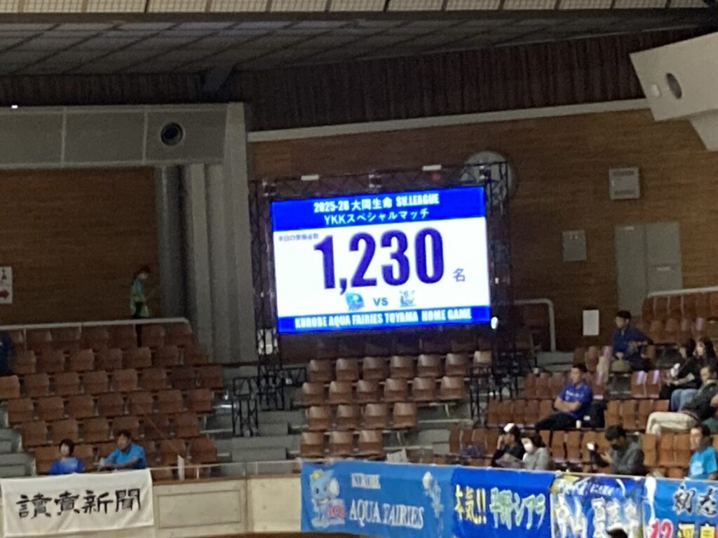 ちなみに観客は1230人入ったじゃ。やはり黒部開催だと1000人超えるちゃね。ありそドームとかYKK体育館とかと比べても、だいぶ見やすいとこやし、やっぱし雰囲気が良いちゃ。