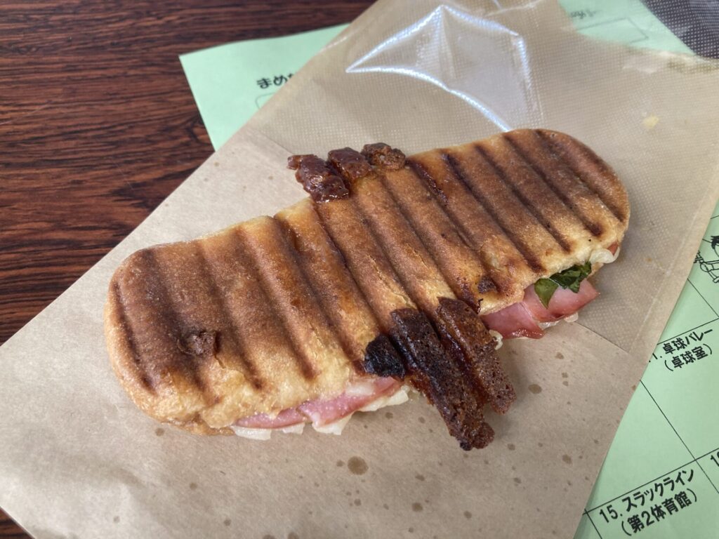粉マスタードが効いていて、ほんのりと辛口やけど、これはイケてるちゃ。香ばしさと野菜のシャキシャキ感が良い感じになっていて、これは美味しくいただけるちゃ。パンの硬さも良い感じやし、何よりも全粒粉の香りが良いがよ。香りと香ばしさと野菜のみずみずしさが噛み合ったキューバサンドはたまらんちゃ。