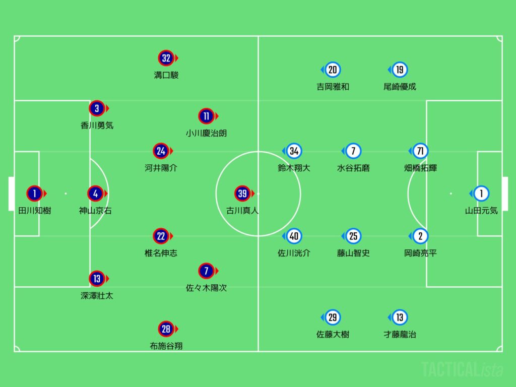 やはり大きな鍵を握っていくのは、甲府戦同様によぉ、お互いの切り替えのところやろう。特に中盤でのボールの奪い合いは相当激しいものになっていくやろうし、このあたりは椎名伸志、河井陽介のベテラン勢の頑張りにかかってくるやろうと思うところやちゃ。あと、向こうは佐藤大樹が攻撃のアクセントになるだけによぉ、対面にいる布施谷翔や深澤壯太はディエルで負けないように戦っていきたいところやちゃ。