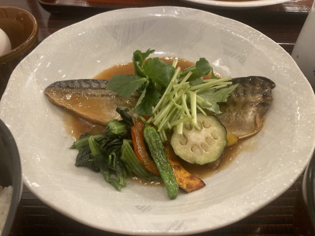 これはいいちゃね…。濃厚な味噌にサバが染み込んでいてよぉ、お野菜も地元のもんを使っとるがよ。プリップリな鯖の白身がジューシーでよぉ、野菜も味噌とか染み込んでいるのがたまらんちゃ。シャキシャキ感もいい感じに残っとるちゃ。素朴で特別感があるというわけやないがやけど、これは美味しいちゃね。