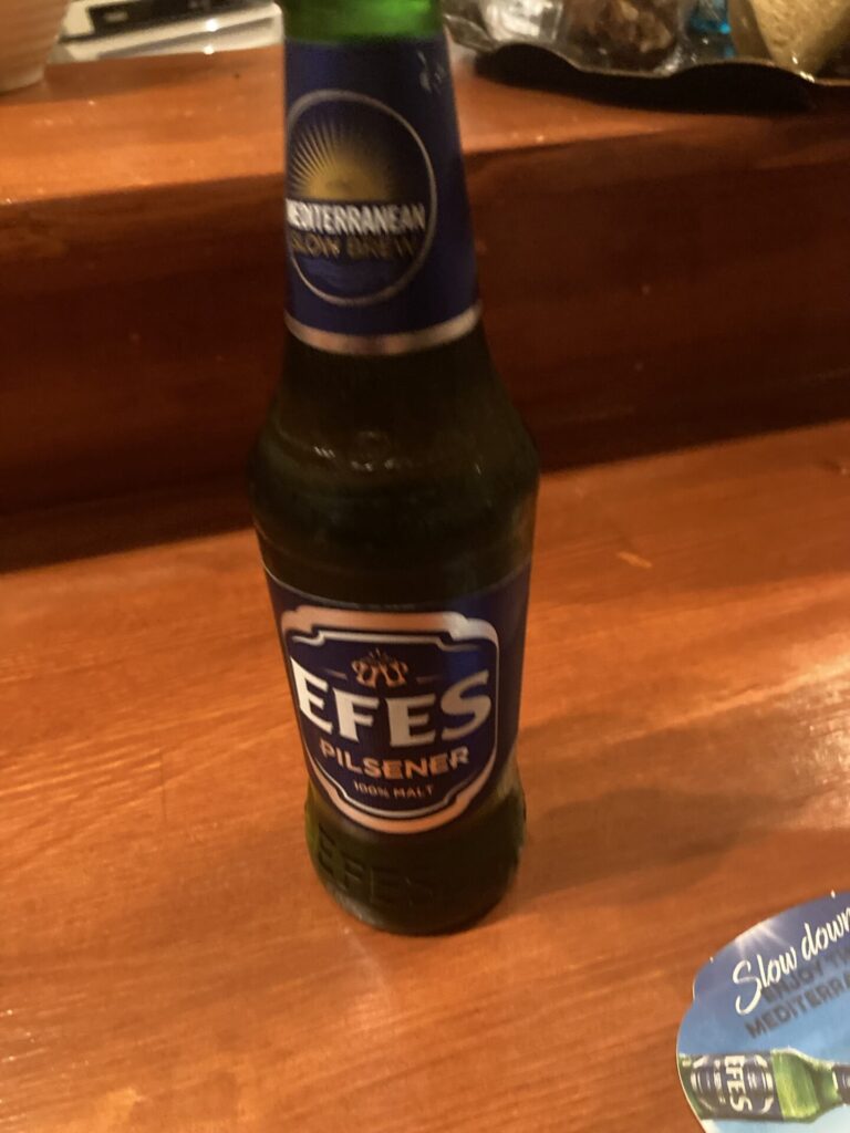 こちらはトルコシェアNo.1を誇るビール「エフェスビール」やちゃ。イスタンブールに本社を構えてよぉ、半世紀以上の歴史を誇る黒海諸国を代表するメーカーやちゃ。麦芽のキレがよくて、飲みやすいビールやちゃ。駆けつけ1杯にはこれはいいのう。