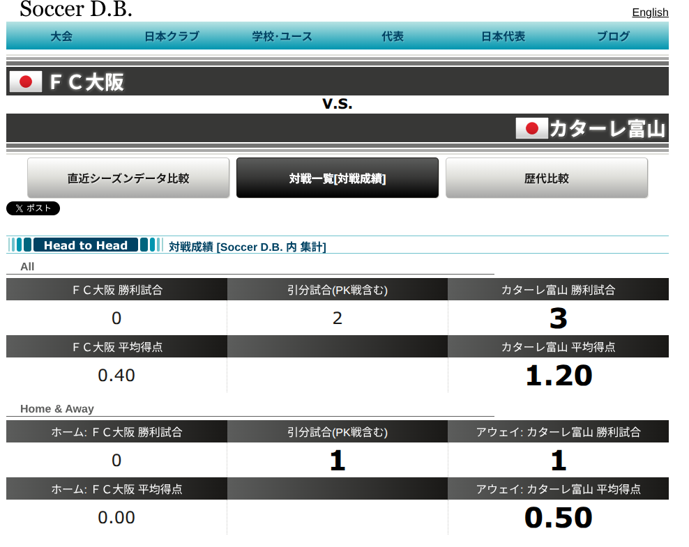 これまでカターレはFC大阪とは5回対戦してきとるがやけど、相性が良くて無敗ながやね。