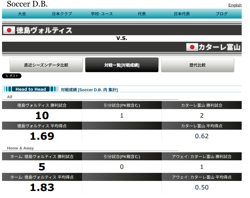 昨シーズンは12年ぶりの対戦やったがやけど、アウェイではルーカス・バルセロスのゴールで負けて、ホームではトニー・アンデルソンに2発、再びルーカス・バルセロスに決められてしまって、シーズンダブルを食らってしまったのう。以前もそうやったがやけど、徳島相手には本当にからっきしやちゃね…。