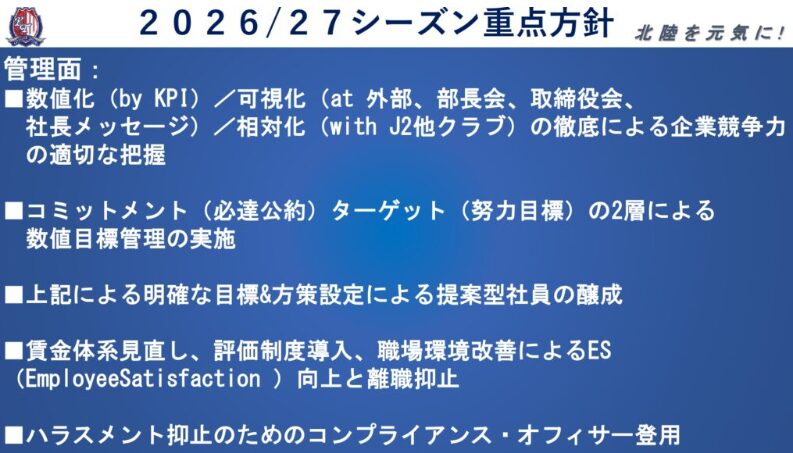これはカターレ富山の「VISION26/27」に触れている「コンプライアンス・オフィサー」の登用がこれやと考えられるところやろう。
