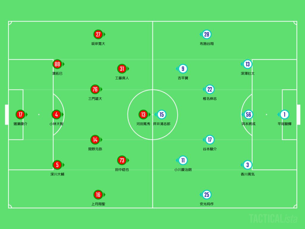 カターレが昨シーズン終盤での戦い方を継続して、高知が帰ってきた吉本監督の戦い方を考えたらよぉ、システム的にはミラーゲームになっていくことが考えられるところやちゃ。吉本監督のチームは、だいぶ硬めのチームを作ってくる印象があっただけによぉ、カターレの方がボールを持っていく展開は考えられそうやちゃ。