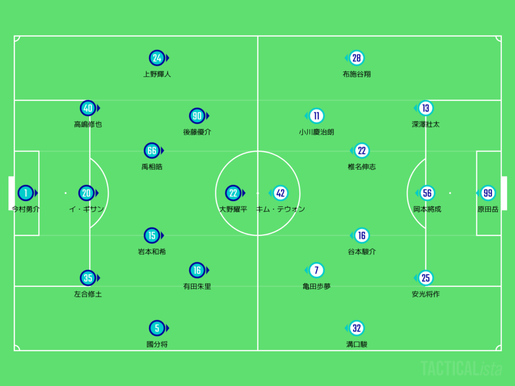 開幕の讃岐を見ている感じやと、3バックで戦うみたいやちゃね。大嶽監督は4バックの印象が強かったがやけど、讃岐が長く採用してきている3バックをベースにしていくようやちゃ。