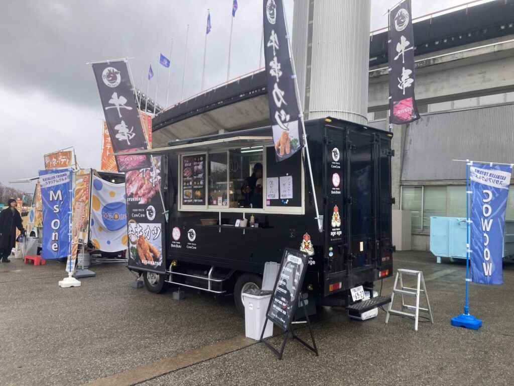 今年初出店みたいやちゃね。「COWCOW」という牛串を販売している店やちゃ。「COWCOW 富山」とググったら、ナイン自動車の「COWCOW富山中央店」が出てくるがやけど、こちらはキッチンカーの店ながよ。
