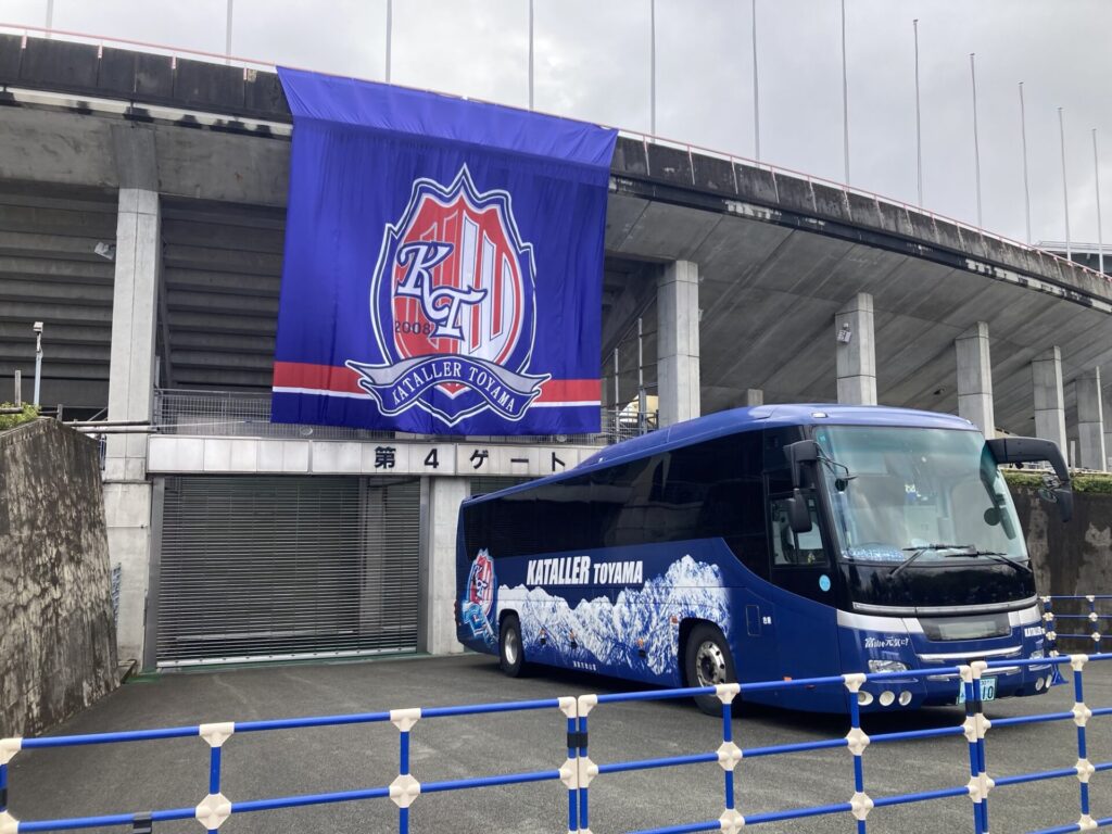 だいたいキックオフ1時間前くらいに到着やちゃ。富山駅でちょっこし寄り道していたがやけど、地鉄とバス経由すると、だいたい2時間くらいかかるちゃ。結構時間はかかるがやけど、オラは読書とDulingoをやっていたがで、思ったよりも時間は早くたった印象やちゃ。