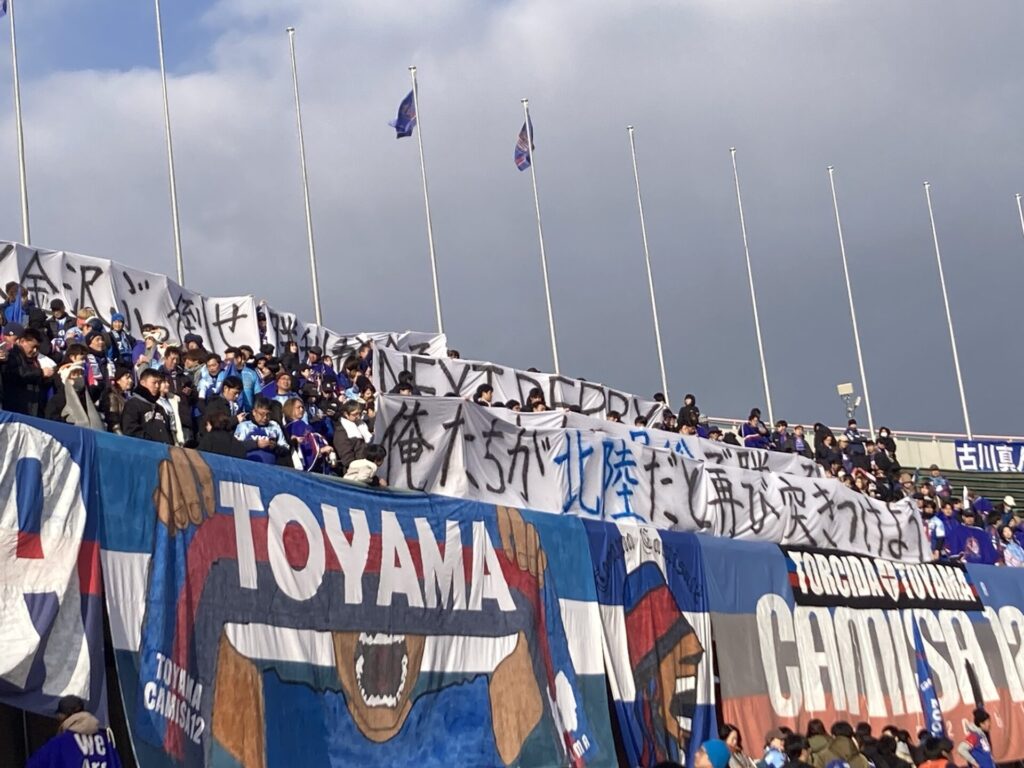 試合はカターレが愛媛にPKで勝利したがやね。試合後のゴール裏は気合が入っていたじゃ。