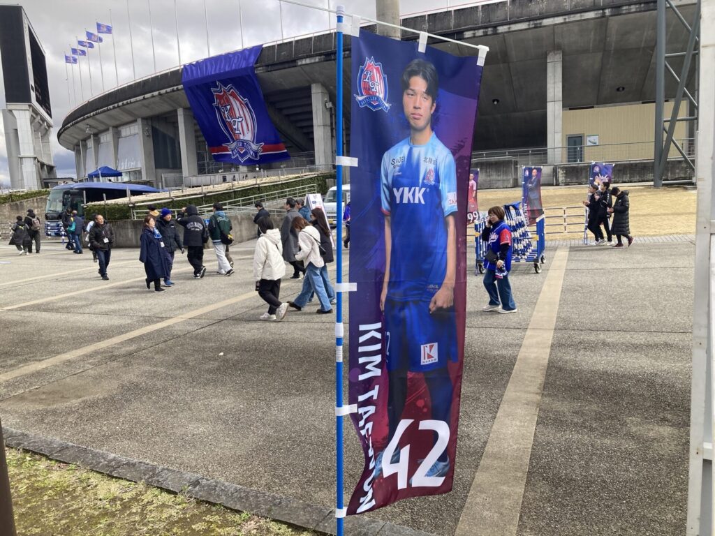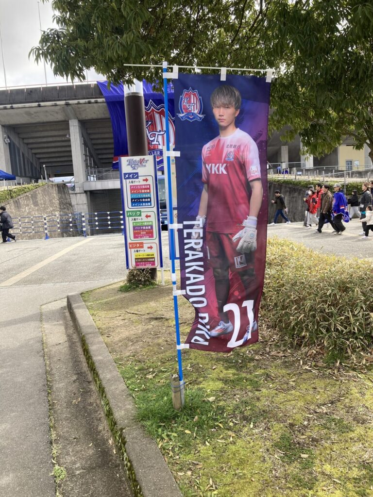 あと、カターレの幟やけどよぉ、ホーム開幕には間に合ってなかった選手たちの幟が仕上がっていたじゃ。開幕前のキャンプは長かったし、キム・テウォン、チョン・ウヨン、寺門陸の3人は、キャンプでそのまま合流したがで、なかなか富山におられんかったがやね。これで全員揃ったじゃ。