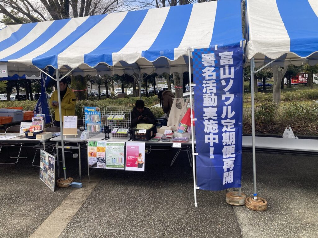 到着すると日間交流協会のブースへ行って、富山⇔ソウル便復活の署名してきたじゃ。