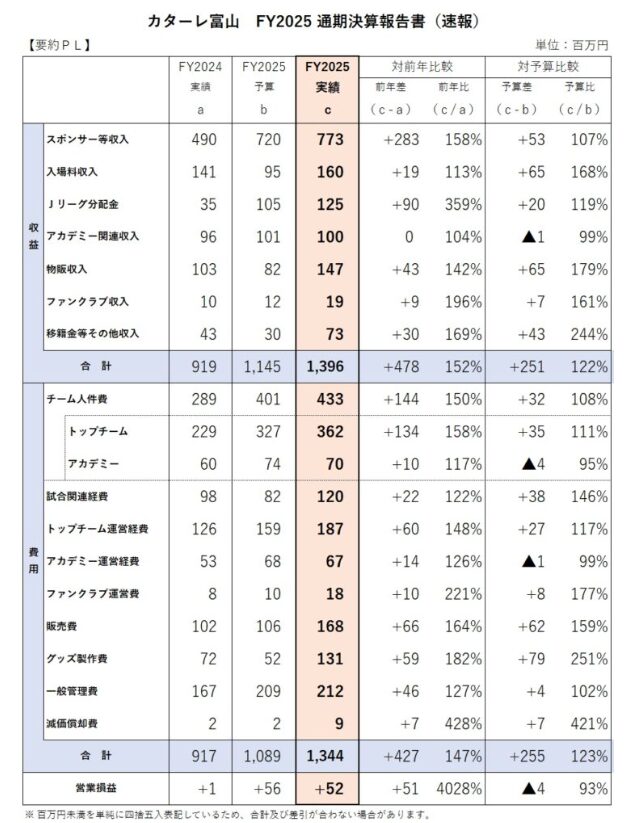 3月も終わりになるこの時期にカターレからよぉ、2025年の決算報告が出ていたじゃ。