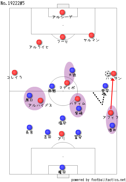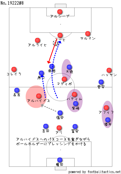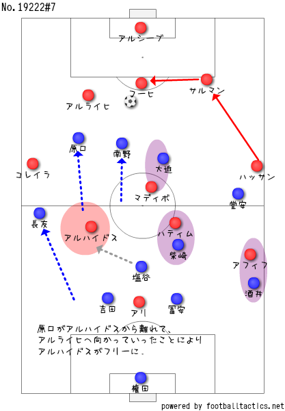 オラの考えを言うならば、早い時間帯だっただけに「慌ててプレスへ行ってしまった」のが個人的な意見ながいど、アルハイドス選手がフリーで持てる瞬間を意図して作っとる印象はあったのう。
