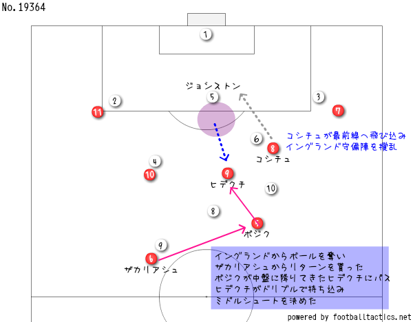 この試合ではイングランドの名ストッパーのハリー・ジョンストンは、対面のヒデクチにマークつくことになっとったがいど、当時のイングランドの戦術によると、攻撃的なエリアに入ったときにマンマークするものであって、どこまでも追っかけ回すわけやなかったがやね。
