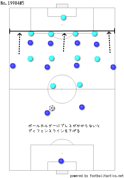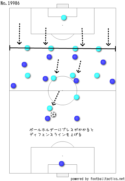 そんでプレスがかからない状況やと、確実にリトリートを選択する…ということやちゃ。相手のプレスがかからない状況下でラインそのまんまにしたら、あっさり裏に蹴られてしまうからのう。