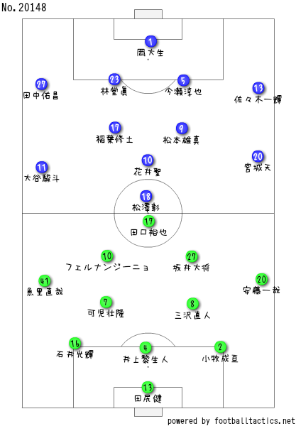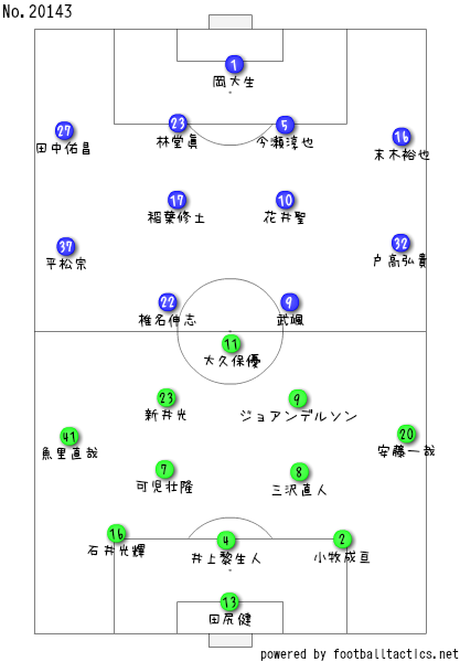 鳥取は前節とは入れ替えとるのが前線の田口裕也と坂井大将の2人がよぉ、大久保優とジョアンデルソンに代わっとるちゃね。あとは他の選手は代わってないちゃ。