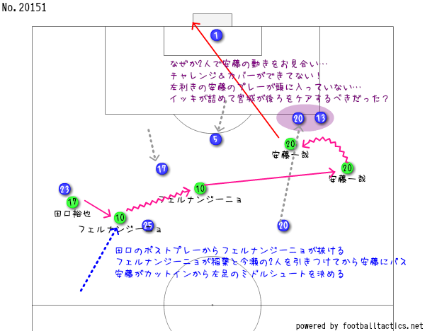 安藤に関しては前半から左足でミドルを狙ってきとったし、前節までの鳥取のサッカーを見ていたら、安藤が中に入ってきてフィニッシュに絡んでくるのは十分に考えられることやにか。それをまんまとシュートされてしまうのは、オラが思うに「スカウティングしてないも同然」と言わざるを得なかったのう。