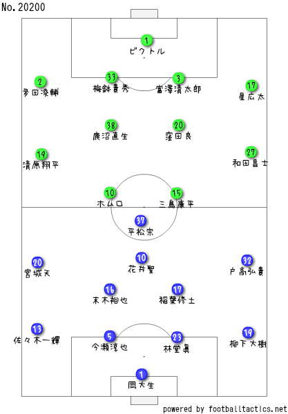 まず相模原のスタメンやけど、キャプテンの富澤が戻ってきとるちゃ。相変わらず間寛平そっくりな顔やちゃ。富澤以外はスタメンは代わってないがやけど、前節は三浦文丈監督が退場になったがで、ヘッドコーチの薩川了洋氏が率いるがやね。