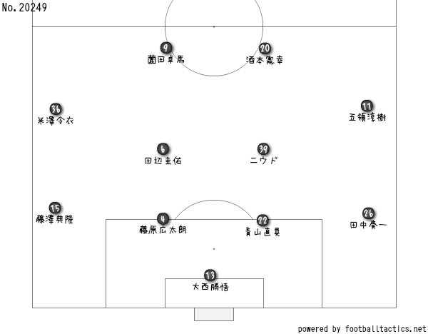 ジョンソン監督に関しては、琉球時代とはさほどやり方は変えていなくて、攻撃時に関しては2-4-4になるくらいのアグレッシブなサッカーながやね。両SBに関しては、実質ウイングといってもいいのかもしれんのう。