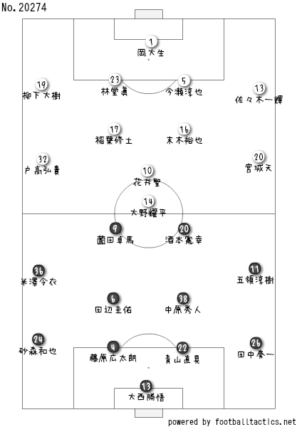 ジョンソン監督の得意とするスタイルと、ホーム戦ということを考慮にいれたら、アグレッシブにやってくるもんかと思っていたがいど、この試合見てたら、両サイドバックの砂森和也も田中奏一もオーバーラップする回数は少なくて、オラの予想とは反する戦い方してきとったのう。