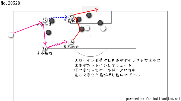 スローインを受けた戸高がダイレクトで末木に回した段階でよぉ、ターン一発で相手を振り切っているところで、もう勝負あり…という感じやのう。ゴール自体は素晴らしきサインプレーながいど、ゴールを決めた要因になったのは、やっぱし「戸高のターン」が一番大きいんやなかろうか?