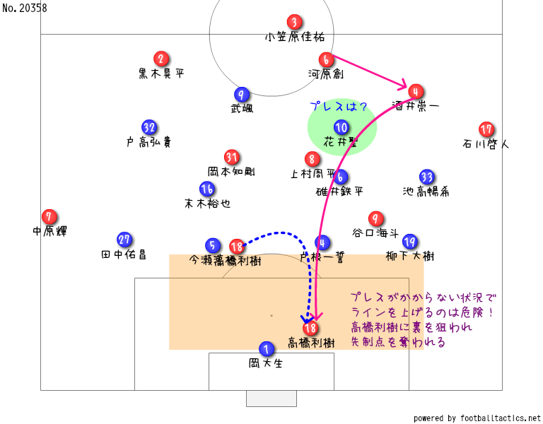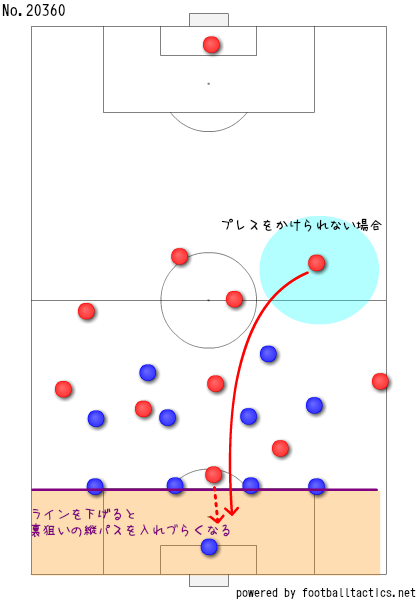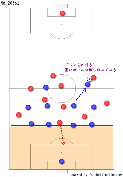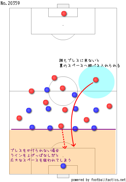 逆にプレスがかかっていないところでラインを上げてしまったら、簡単に縦パスで裏を突かれてしまうがいちゃ。プレスいけてないがにラインが上がってたら、そりゃ「どうぞ蹴ってください」と言ってるも同然やちゃ。