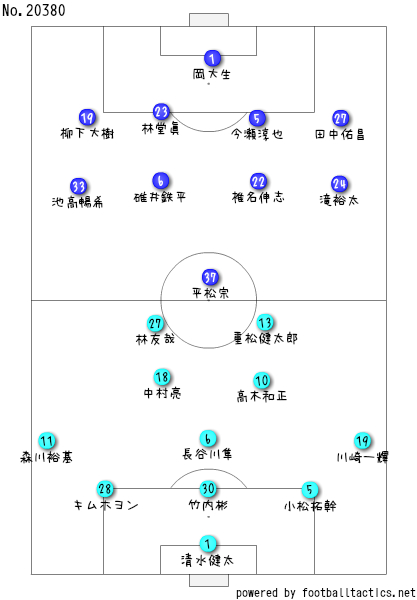 讃岐は前舌と異なるのは、FWが栗田マークアジェイから林友哉に代えとるちゃね。システムは3-2-2-2と可変式のフォーメーションを採用しとって、現在17位やけど、これに変えてからは負けてないがやね。