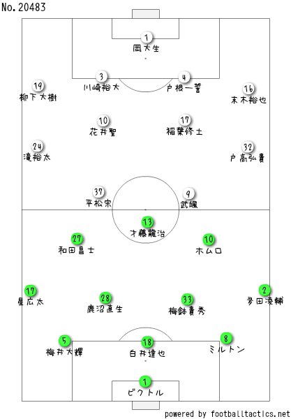フォーメーションは前節と変わらん4-4-2やちゃね。メンバーも入れ替えとるのが左に戸髙入れて、右に滝裕太を入れたくらいであって、ほとんど変えてないがやね。メンバー入れ替えが多かったカターレにしては、珍しいちゃね。