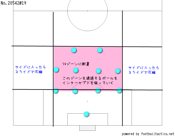 統計上は9割のゴールちゃ、この「14ゾーン」を通過するらしいがやと。そのこともあって、攻撃ではこのゾーンを上手く使っていくことと、守備ではこのゾーンを通過させないことを頭に入れて、戦術など組み立てていくがいちゃ。