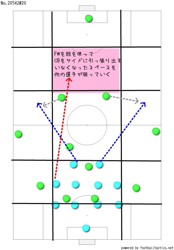 そうなっていくと、CBはセンターラインから剥がされてしまってよぉ、そこを他の選手がガンガン突き進んで行くがやね。