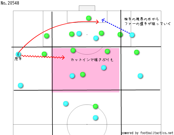 あと、このチームは両サイドは突破力ある選手が揃っていることもあって、クロスだけやなくて、カットインという選択肢も持っとるがやね。
