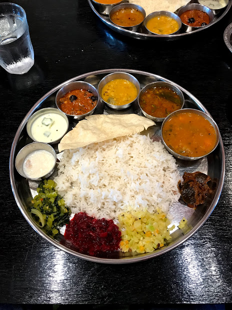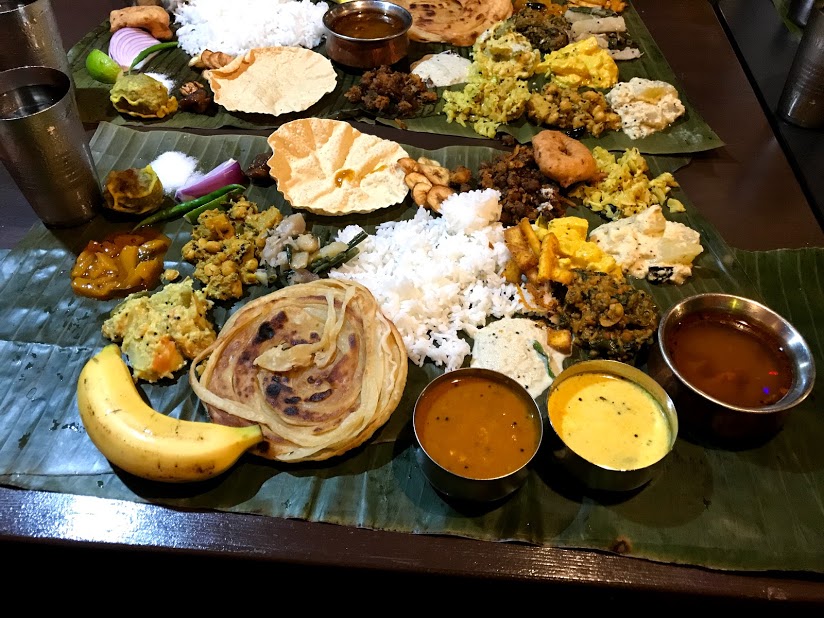 この上にあるインドの定食「ミールス」ちゃ、全部肉は使われてないがやね。サディーヤという南インドのケララ州における祭り事で、こういった料理を食べる文化があるらしいがやけど、まあ彩りも凄ければ、味のバリエーションもすごくてよぉ、混ぜたら味も変化がすんがで、これは本当に「ご飯がすすむくん」ながいちゃ。何よりも「食事が楽しい」がやね。