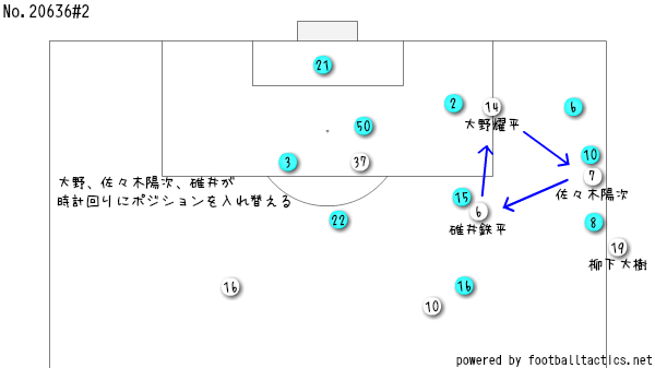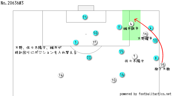 そこでカターレは、大野、ヨージ、碓井の3人が時計回りでポジションを入れ替えるがよ。