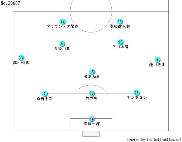 3バックは、元ガンバの西野貴治、元千葉の大ベテランの竹内彬に、キムホヨンの3人ながやね。中盤は高卒、大卒のルーキーの選手を多く使ってきとってよぉ、前線はルーキーのブラウンノア賢信に、今や讃岐の顔になった感がある重松健太郎ながいちゃ。
