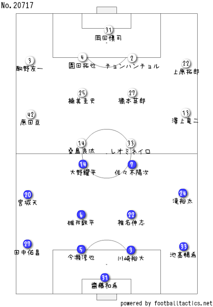 昇格の望みが無くなってしまったがで、カターレはフォーメーションを戻したがやね。元々やろうとしたサッカーに戻して、最近は起用していなかった選手を中心に添えたメンバーやったのう。