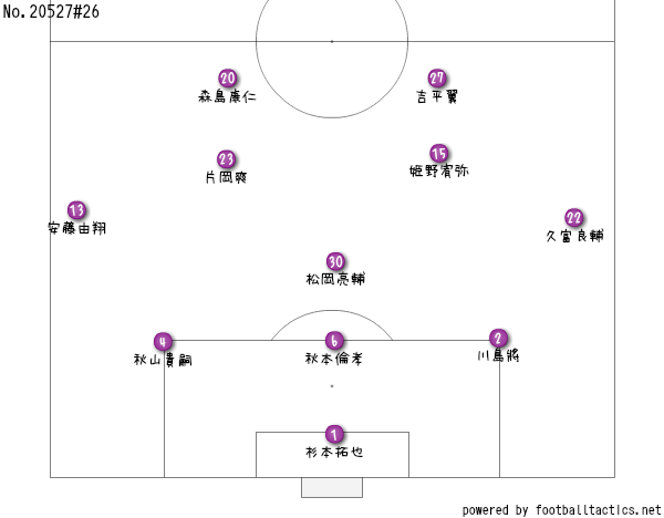 3-1-4-2を組んでいたがいちゃ。最終ラインから前線まで見て、年齢的に若い選手ちゃ、姫野と吉平くらいであって、ほとんどがベテラン選手を占めとったがやね。