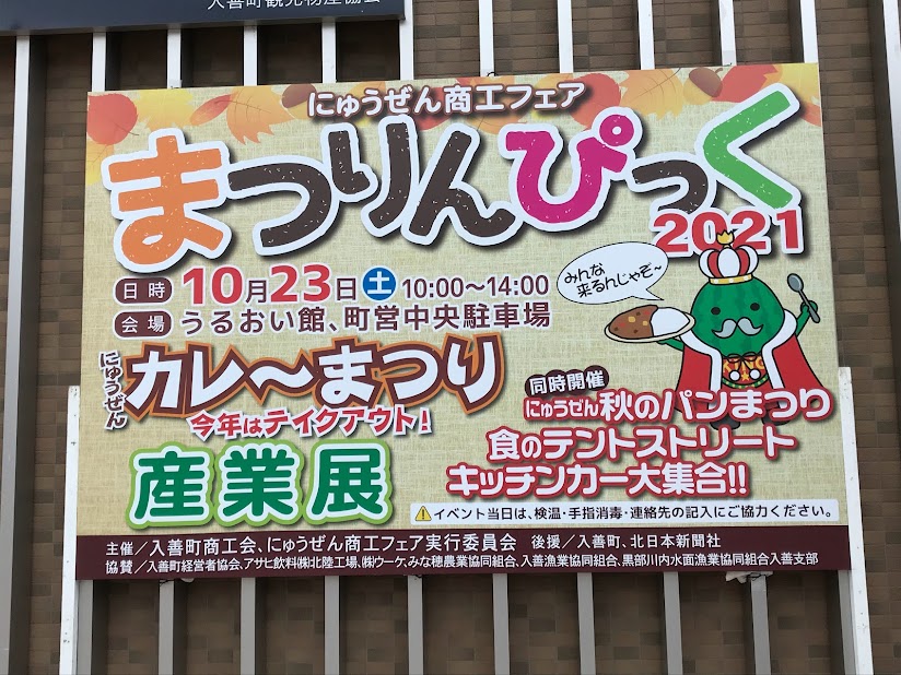 これは毎年10月に入善町で行われているイベントでよぉ、毎回入善町の店や団体の方々を中心に参加されとるがいちゃ。2017年からは「まつりんぴっく」という名前になって、その中で「カレーまつり」を開催しとるがいちゃ。