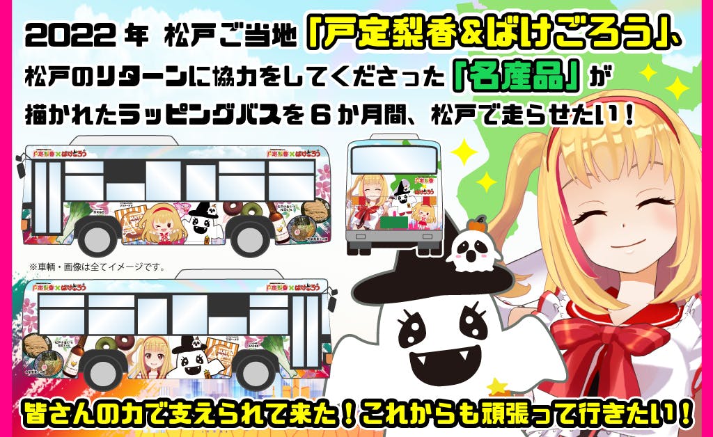 そんで25日から始まったクラウドファンディングやけどよぉ、戸定梨香さんと松戸市の名産品が描かれているラッピングバスを6ヶ月間、松戸市内で走らせるというものやちゃね!
