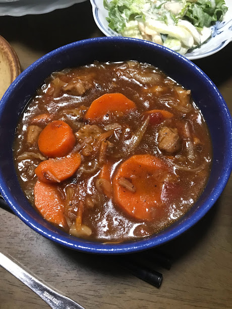 煮込ませている間に、すごくビールの香りがして、香りを嗅いでいるだけで酔っ払いそうになるかと思ったがいど、この香りが食欲をそそるちゃね。ビールのシチューということで苦味があるもんかと気にしそうやけど、実際そういうことはないちゃ。今回は豚肉を使ったがいど、豚肉もいい感じに柔らかくなってたがで、いろいろ試し甲斐ありそうやちゃね!