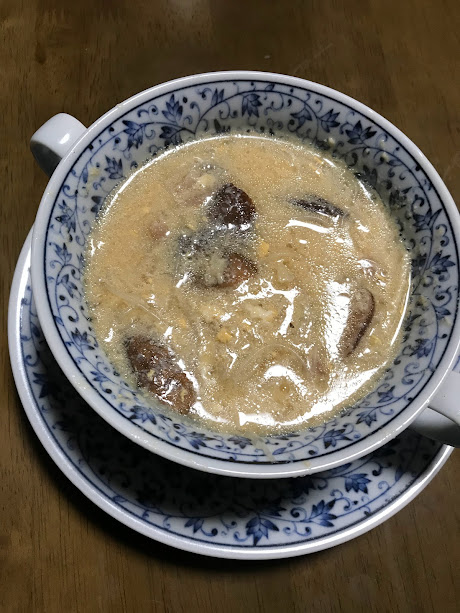 酸辣湯の特徴ちゃ、やっぱし酸っぱ辛いスープによぉ、たけのこ、しいたけ、豆腐などの食感を楽しめるところやろう。そういうところはまぁまぁできたかなー…と思うところやけど、今度はきっちり材料を揃えた上で作ってみたいところやちゃね。