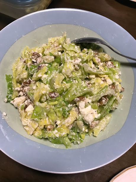 これはなかなか不思議な味やったじゃ。キャベツとクルミとフェタチーズの組み合わせながいど、キャベツのシャキシャキ感と、クルミの固い感じに、フェタチーズのポロポロ感が組み合わせると、ちょっこしミスマッチかな…と思うがやけど、意外と食が進む感じがしていきて不思議な感じやったじゃ。ただ、ちょっこし塩が強すぎるがで、フェタチーズを使うときは、塩抜きをするなど工夫は必要かもしれんちゃね。