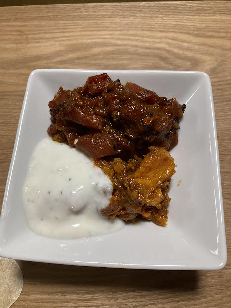 情報が少なくてオラもよく分からんがやけど、カボチャ煮込みのヨーグルト和えという感じながいちゃね。カボチャは数種類のスパイスと一緒に煮込ませるのが特徴でよぉ、いかにも中央アジアとか南アジアの雰囲気を醸しているのが気になるちゃね。外国のレシピを見つけたがで作ってみるちゃ。